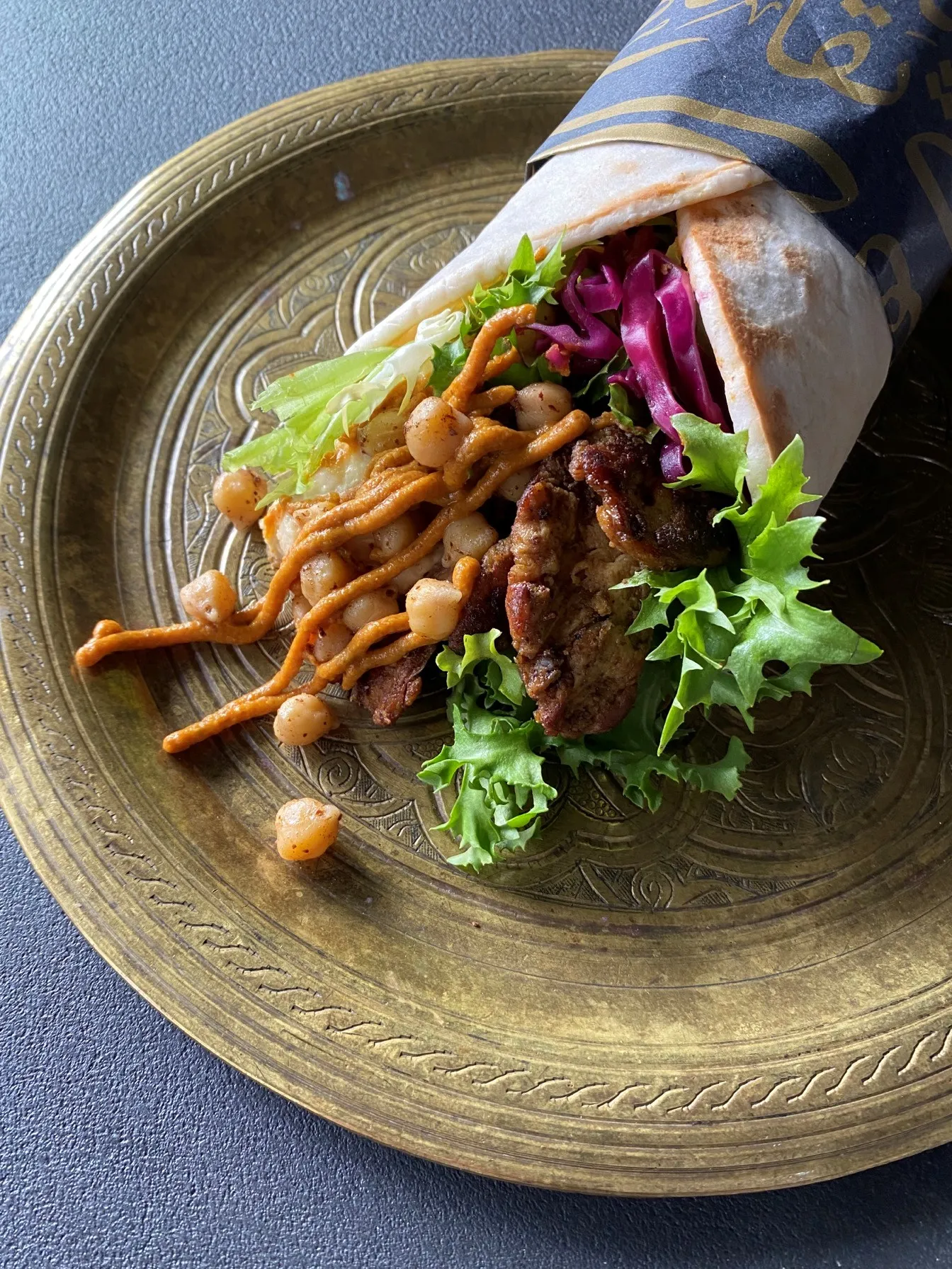 大豆をベースにしたプラント・ミートをアラブのスパイスでマリネして焼いたジューシーで香ばしいネクストミート。フムスやロースト人参ディップ、赤キャベツのピクルス、ケールなどたっぷりの野菜とヒヨコ豆を一緒に古代小麦の平焼きパンでロールサンド。さまざまな味と食感が楽しめる奥深い味わいです。【販売期間:通年販売/各日10個限定】