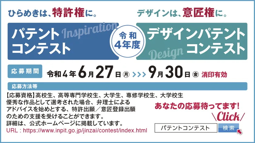 令和4年度パテントコンテスト/デザインパテントコンテスト 6月27日より応募開始