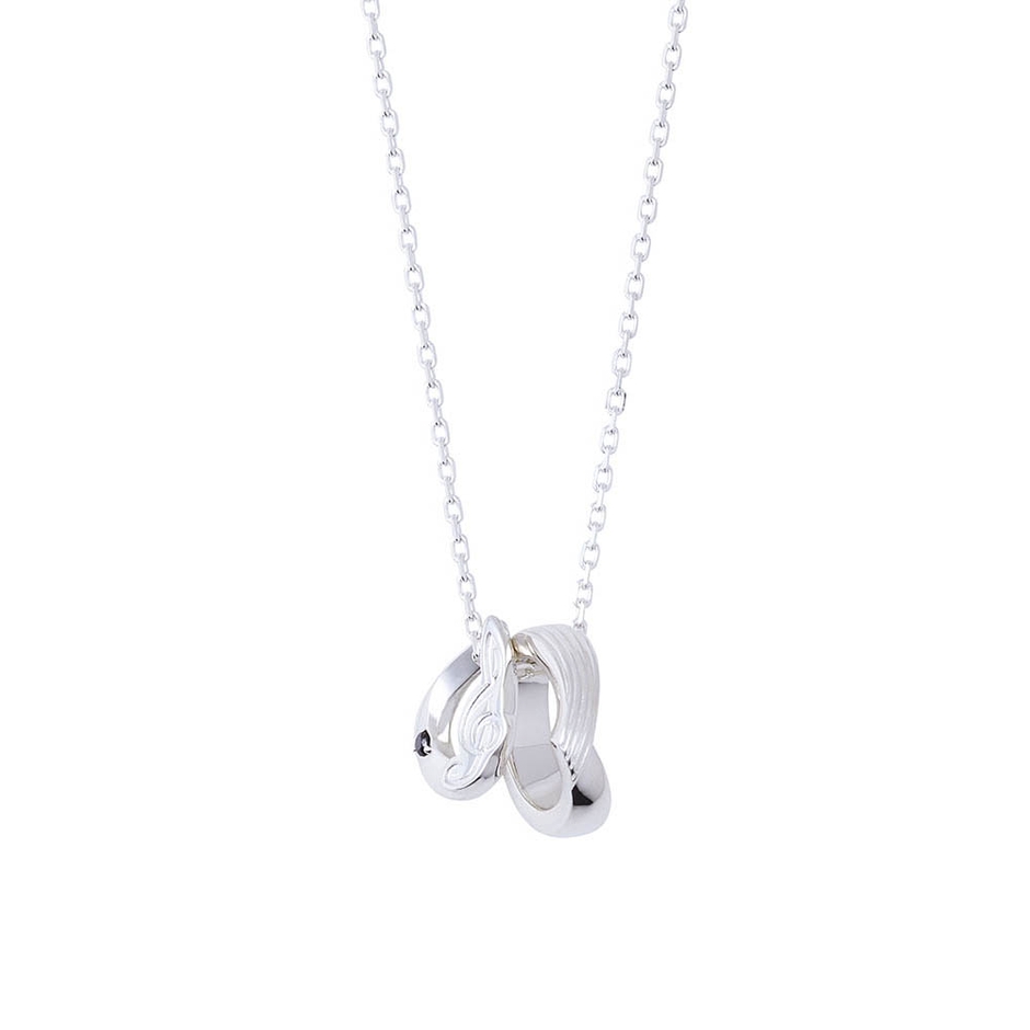 ト音記号パーツの表面にはイメージカラーストーンをセットし、V字パーツの表面には五線譜を取り込みました。内側にはさりげなく楽器アイコンを刻印しています。