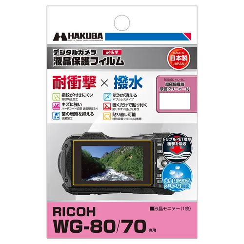 ハクバ写真産業株式会社 (本社:東京都墨田区)は、RICOH WG-80 / WG-70 専用液晶保護フィルムに「耐衝撃×撥水」タイプと「親水」タイプの2製品を発売いたします。