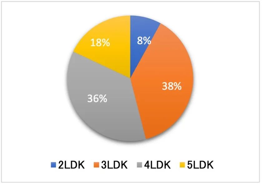 理想の間取りについて質問したところ、「2LDK」が8%、「3LDK」が38%、「4LDK」が36%、「5LDK」が18%という回答結果になりました。3LDK以上の広い間取りを求めるお客様が圧倒的多数を占めています。