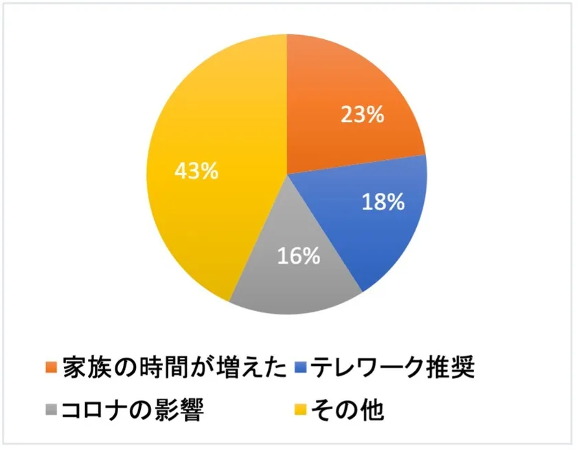 ・家の購入を考えるタイミングは、「家族の時間が増えた」23%、「テレワーク推奨で都心以外の暮らしも検討」18%、「コロナの影響」16%で過半数
