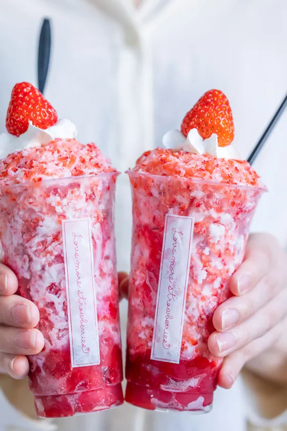 急速冷凍した“いちご”と“濃厚ミルク氷”を一緒に削ることで、いちごの甘酸っぱさとミルクのまろやかな味わいが絶妙にマッチした、スイーツ系かき氷。
