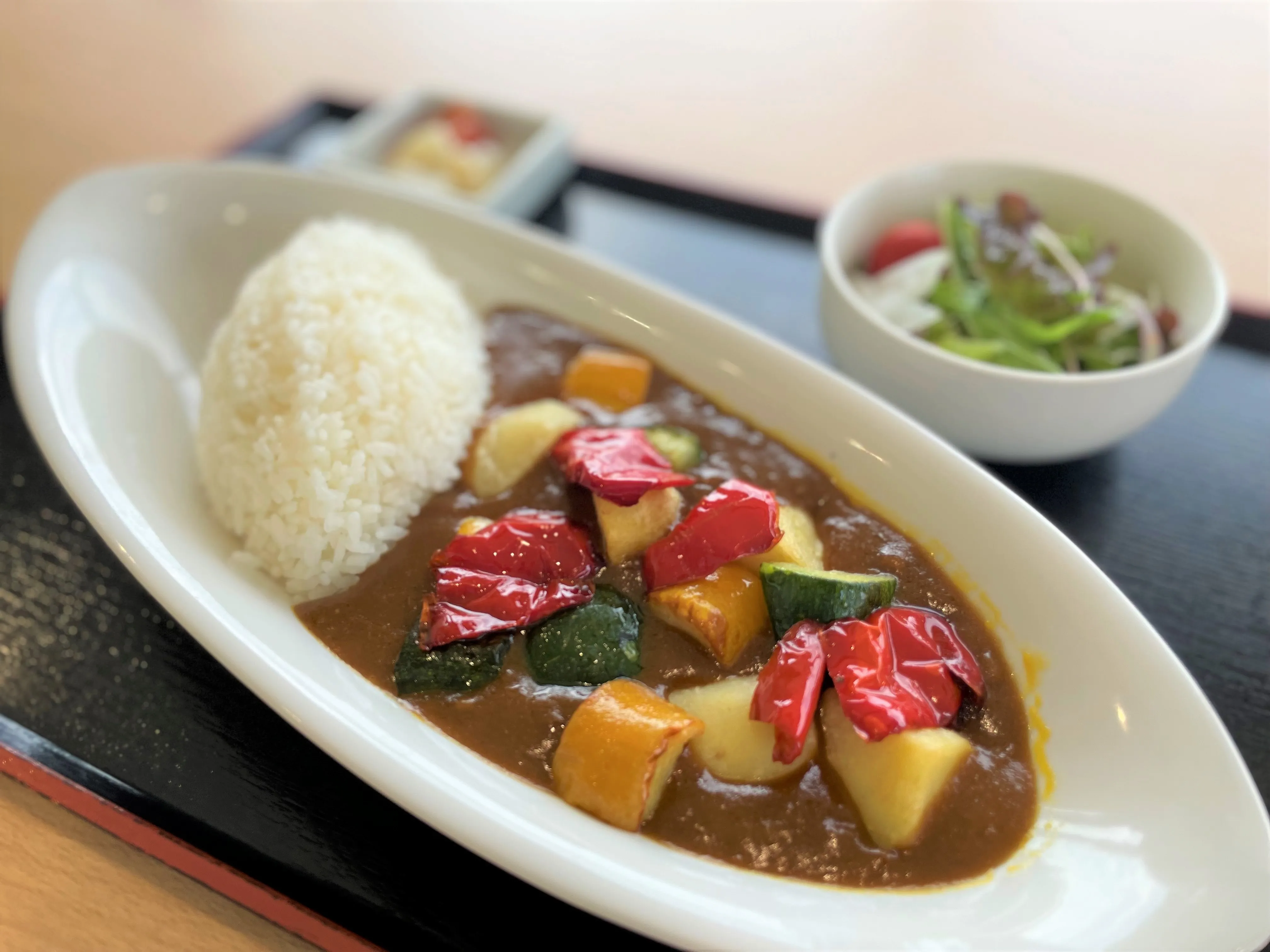 「夏の野菜カレー」 「冷やし坦々うどん」