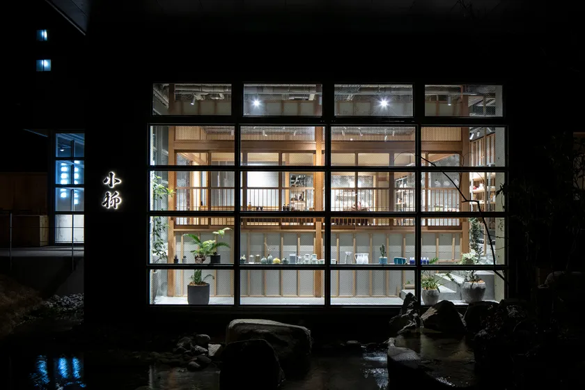 リノベーション前の「小柳」は、東棟 - 中央棟 - 西棟と3つの建物が連なっていましたが、昭和初期の写真を見ると中央棟は存在せず、その部分は庭で正面入り口であったことがわかります。さらに江戸時代にはこの場所に下級武士の湯「小柳之湯」があったことが推測されることから中央棟を解体、東西の棟を分けました。東西をつなぐ外通路は車椅子も通行可能なスロープを設けた回遊庭とし、中央棟の跡地には「小柳之湯」を復活させました。