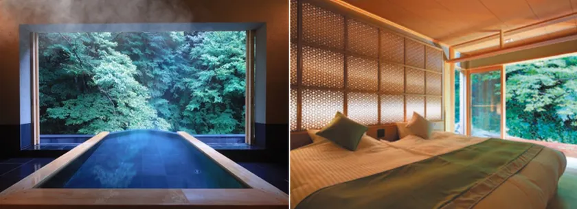 芦ノ湖より車で約20分。箱根山麓の歴史深い湯河原温泉に佇む隠れ家的な宿「奥湯河原 結唯」。