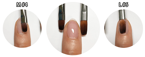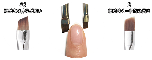 穂先が長いL #6は、しなりが良く圧がかかりにくいので、柔らかいジェルでも穂先で掘ってムラになりません。