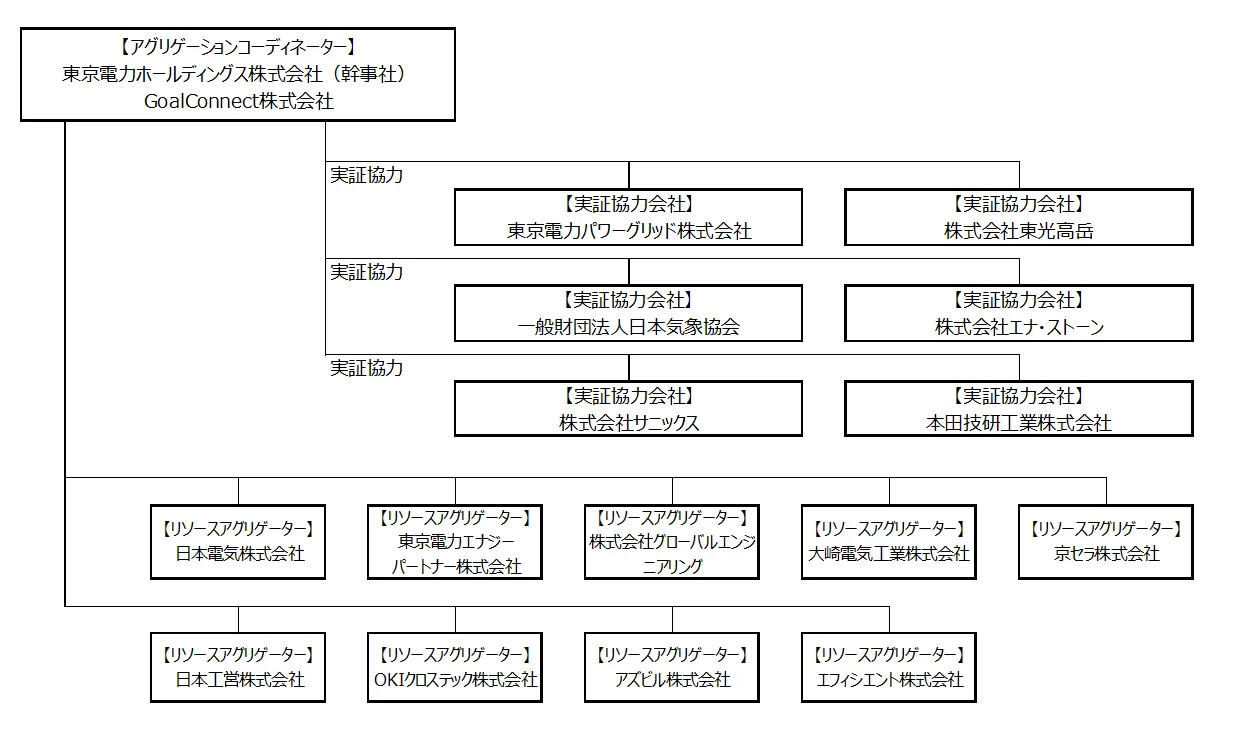 東京電力ホールディングス株式会社、Goal connect株式会社、株式会社エナ・ストーン、株式会社サニックス、東京電力パワーグリッド株式会社、株式会社東光高岳、一般財団法人日本気象協会、本田技研工業株式会社、OKIクロステック株式会社、京セラ株式会社、東京電力エナジーパートナー株式会社および日本電気株式会社を含む17社※1は、コンソーシアムを形成し、経済産業省が一般社団法人環境共創イニシアチブ(以下、「SII」)を通じて公募する実証事業「令和4年度 蓄電池等の分散型エネルギーリソース※2を活用した次世代技術構築実証事業費補助金(再エネ発電等のアグリゲーション技術実証事業のうち分散型エネルギーリソースの更なる活用に向けた実証事業)(以下、「分散型エネルギーリソース活用実証」)」に申請しておりました。
