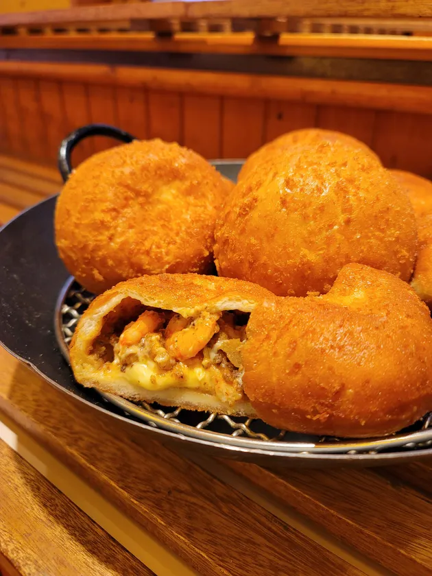 「海老カレーパンフォンデュ」は、甘エビの旨味をカレールーに加えて、プリプリの海老とフォンデュチーズが入ったカレーパンで、昨年大会ではバラエティ部門の最高金賞を受賞しています。