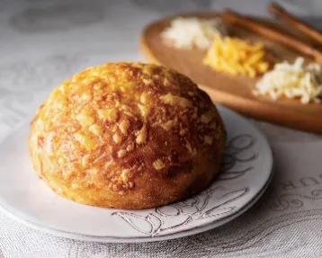 フランスパン生地に、グリュイエール、ゴーダ、レッドチェダーの3種のチーズを使用しています。厨房で一から作るマッシュポテトを練り込むことでもちもちとした食感が生まれます。