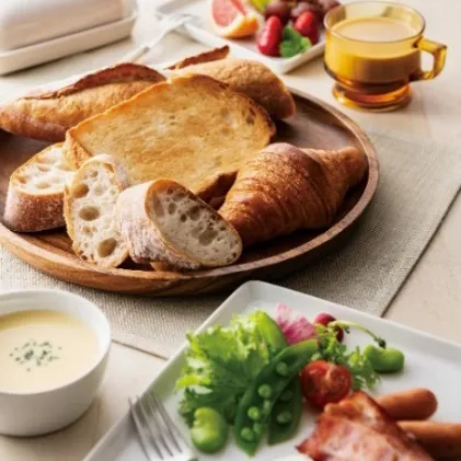 丁寧に時間をかけて作りだすパンは、ハード系を中心に13種をご用意します。また、シェフやソムリエ・紅茶マイスターの資格を持つスタッフが、“パンを使ったお料理のレシピ”や“ワインや紅茶とのマリアージュ”など、パンをより一層美味しくお召しあがりいただくための楽しみ方を新たに提案します。