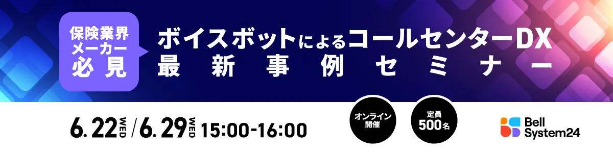株式会社ベルシステム24(本社:東京都港区、代表取締役 社長執行役員:野田 俊介、以下:当社)は、伊藤忠テクノソリューションズ株式会社(本社:東京都港区、代表取締役社長:柘植 一郎、以下:CTC)と共同で、ボイスボットの活用によるコールセンターDXをテーマとした、「<ベルシステム24×CTC>ボイスボットによるコールセンターDX最新事例セミナー」と題したオンラインセミナーを、6月22日、6月29日の2回に亘って開催します。