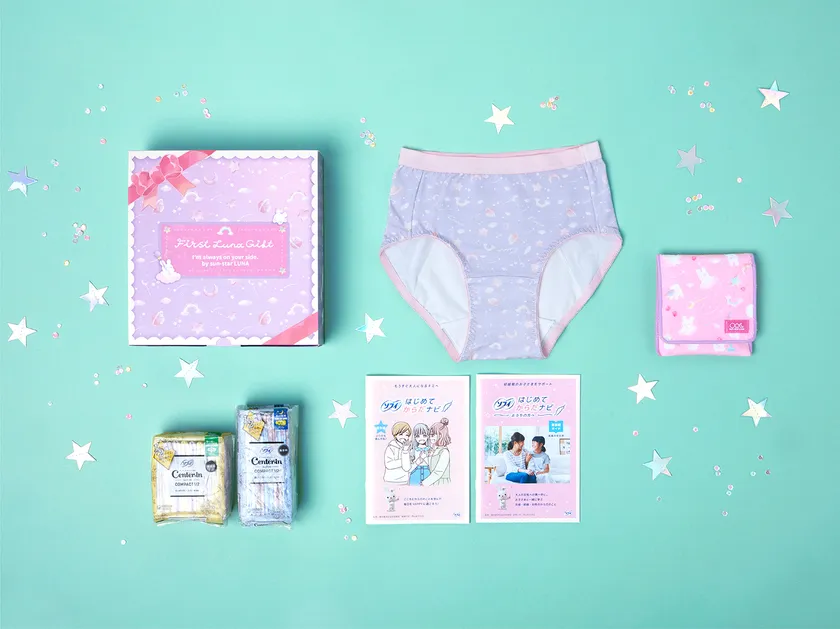 「サンスタールナ」は10代の女性が「はじめての生理」を迎えるのに必要なアイテムがすべて揃うセット商品『First Luna Gift』を企画開発しました。女性が初経を迎える年齢には個人差があり、ある日突然訪れます。その日がいつ来てもいいように、保護者の方が事前に準備しておくためのギフトセットです。