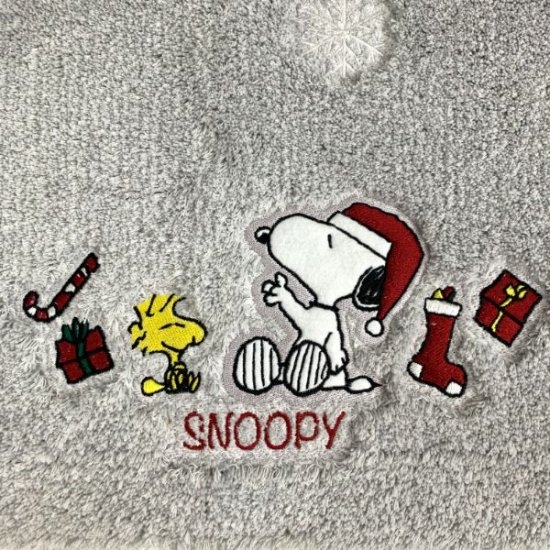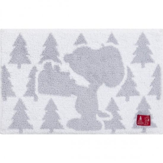 ホワイト×グレーのアクセントマットには、プレゼントを手にしたスヌーピーのシルエットがデザインされています。周りにはツリーもデザインされていて、クリスマスシーズンにピッタリ☆彡