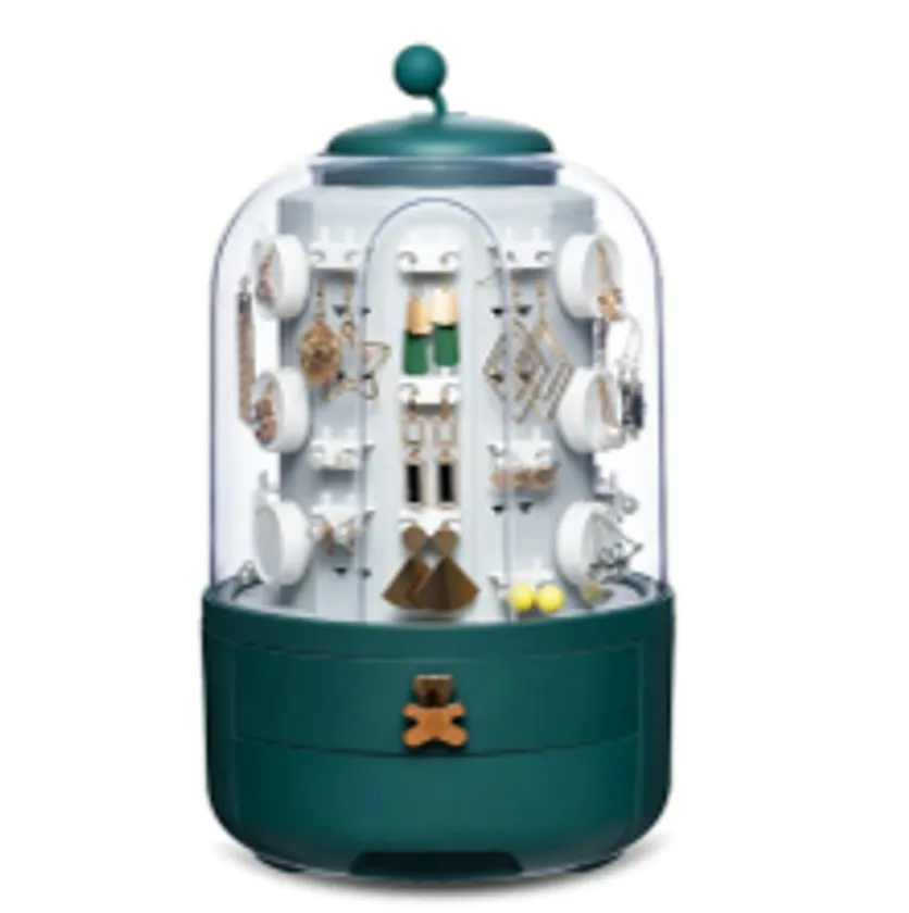 ジュエリーショップのようなアクセサリー収納。ホコリの付着を防ぎながら、きれいにお気に入りのアクセサリーを保管が可能。引き出しなども活用し、小物をおしゃれにまとまられる。