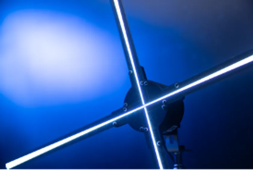 3Dファントムは株式会社Life is Styleが提供する、LED光源がライン状についたブレードを高速回転させ、光の残像によって映像を映し出し、インパクトのある3D映像を肉眼で体験できる3Dホログラムディスプレイです(専用メガネ等は不要)。