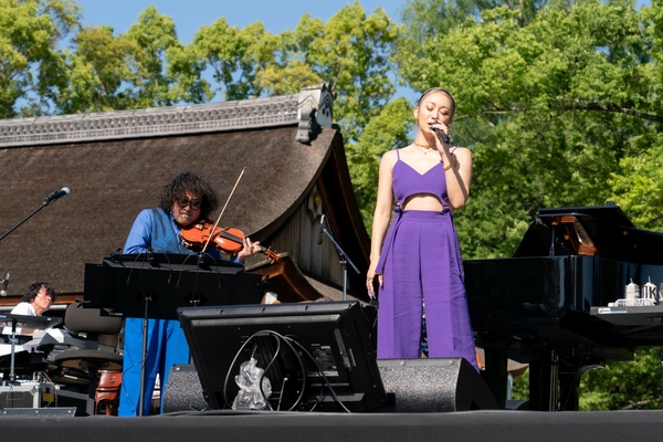 ここで音楽祭のハウスバンドの一員でもある羽毛田丈史が、「地球に乾杯」のピアノ演奏&ごあいさつ。盟友の葉加瀬と日頃の仲の良さがうかがえる、ユーモアに溢れたやりとりでも場をにぎわせる。「Fragrant Woods」でも息の合ったプレイを見せ、終始和やかな空気が上賀茂神社を包み込む。それに続き葉加瀬が、「僕の曲にイタリア語の歌詞を付けて歌ってくれたりもして。素晴らしいテノール歌手です!」と大瀧賢一郎を紹介。大瀧が映画『グラディエーター』から「Nelle tue mani」を見事な歌唱で聴かせ、音楽祭に花を添えた。