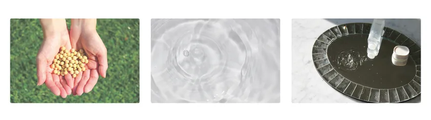 アレルゲンとならない大豆由来のアミノ酸を主成分としています。デリケートな乳幼児、思春期、大人の肌にやさしく安心してお使いいただけます。
