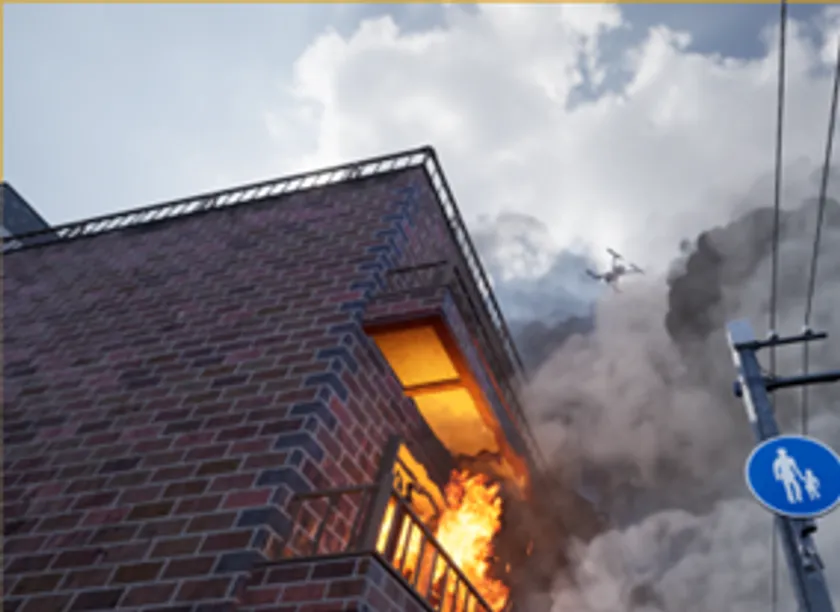 VFR・理経が開発したVRシミュレータは、国産ドローン「SOTEN」と同様のユーザインターフェースを再現し、バーチャル上での飛行訓練を可能にするSOTEN訓練トレーナーです。火事の現場など、再現が困難な実務を模した環境での訓練が積めるため、実務ならではのヒヤリハット(※1)やトラブルの経験が得られます。SOTENと同様の機体性能やユーザインターフェースを再現しているため、カメラ撮影などもトレーナー内で訓練することができ、課題となっている操縦経験の向上にも役立ちます。