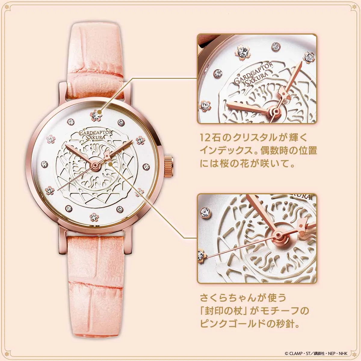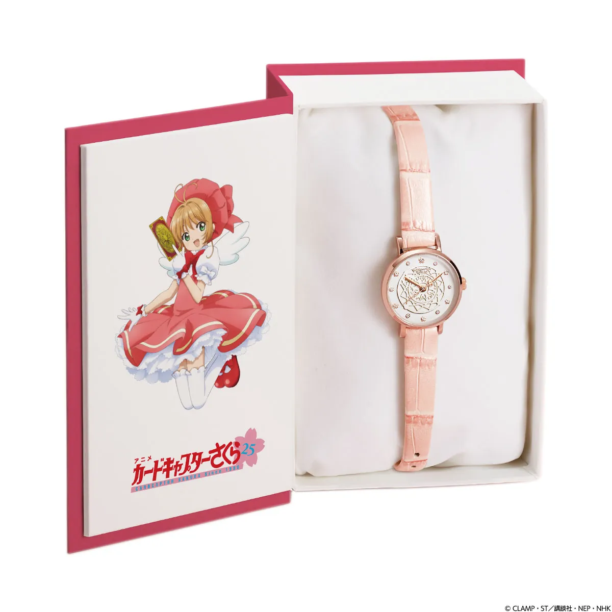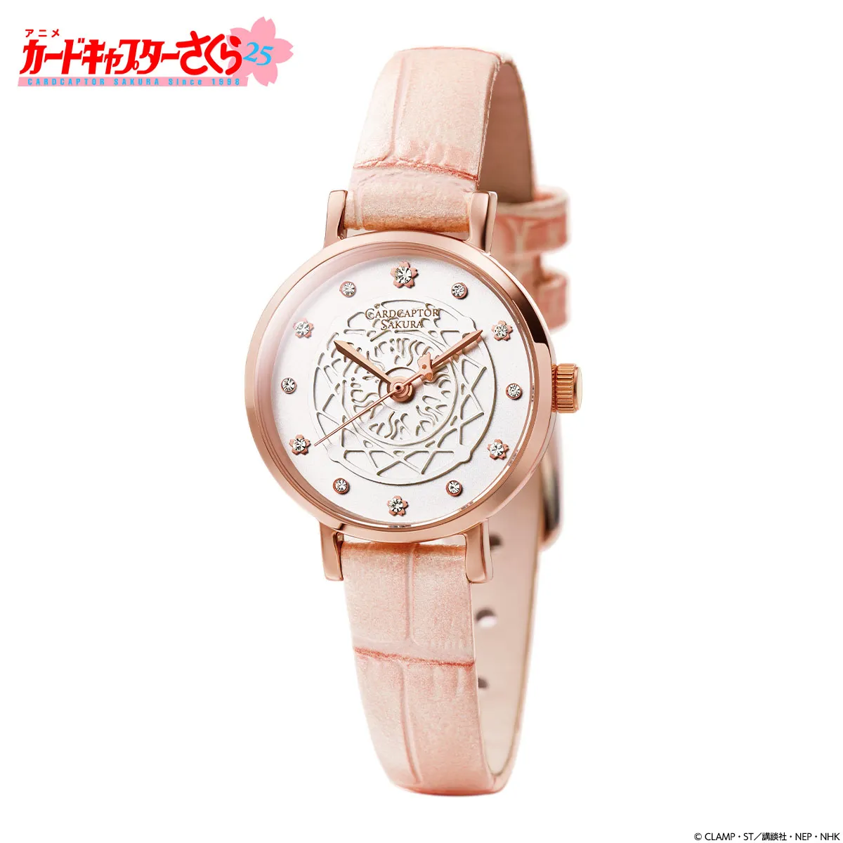 『カードキャプターさくら』アニメ放送開始25年を記念して 12石のクリスタルが煌めくピンクゴールドの腕時計が登場! クロウカードブックをイメージした特製ボックス入り