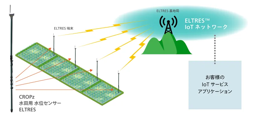 このCROPzシリーズのセンサーとして、今回は、ELTRES(TM) IoTネットワークサービスを利用する『水田用 水位センサー』を製品化しました。