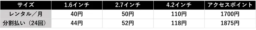 レンタルプラン価格表
