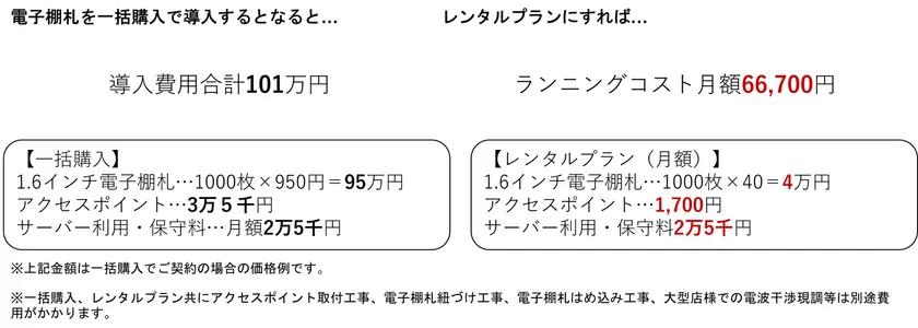 5. ご契約から2年ご利用後には電子棚札とアクセスポイントのご利用代金は頂戴せずに、システム利用費だけでご利用いただけます。