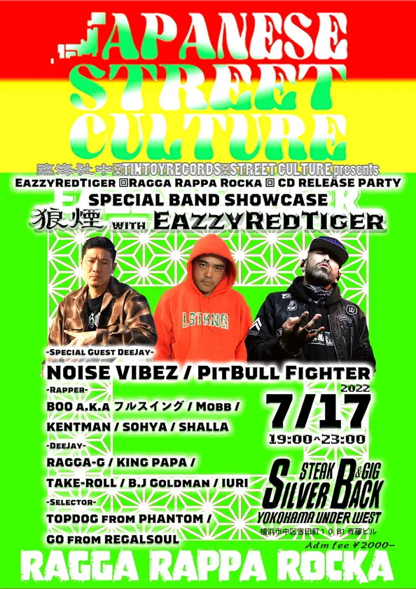日本語レゲエヒップホップイベント「STREET CULTURE」を 横浜市中区吉田町 SILVERBACKにて7月17日に開催