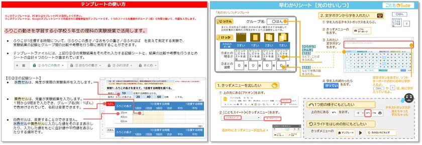 実験結果の集計が簡単に行える理科のテンプレートや、探求学習で活用できる探求ワークシートなどを用意しております。