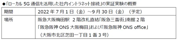 阪急阪神不動産株式会社(本社:大阪市北区、社長:諸冨隆一(※1))では、多様化するワークスタイルを支援するため、ローカル5G(※2)通信を活用した社外サテライトオフィス等からの社内イントラネット接続の実証実験を2022年7月1日(金)より開始します。