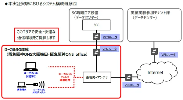 そこで、今回の実証実験では、阪急大阪梅田駅直結のサテライトオフィス「阪急阪神ONS大阪梅田」・「阪急阪神ONS office」(※4)において、ローカル5G通信環境を構築し、実際に複数の企業にイントラネットに接続したオフィスワークを試験的に行っていただくことで、ローカル5Gの優位性を検証し、サテライトオフィスの利用価値向上につなげていくことを目指します。