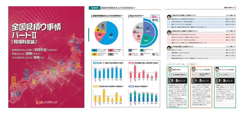 『全国見積り事情II』は指数外作業の相場料金を中心に、見積りに関する様々な情報を集めたデータブックであり、格安!自動車修理見積もりサービス『EGwebマンスリープロ』で見積りを作成する際に活用できるデータ集です。