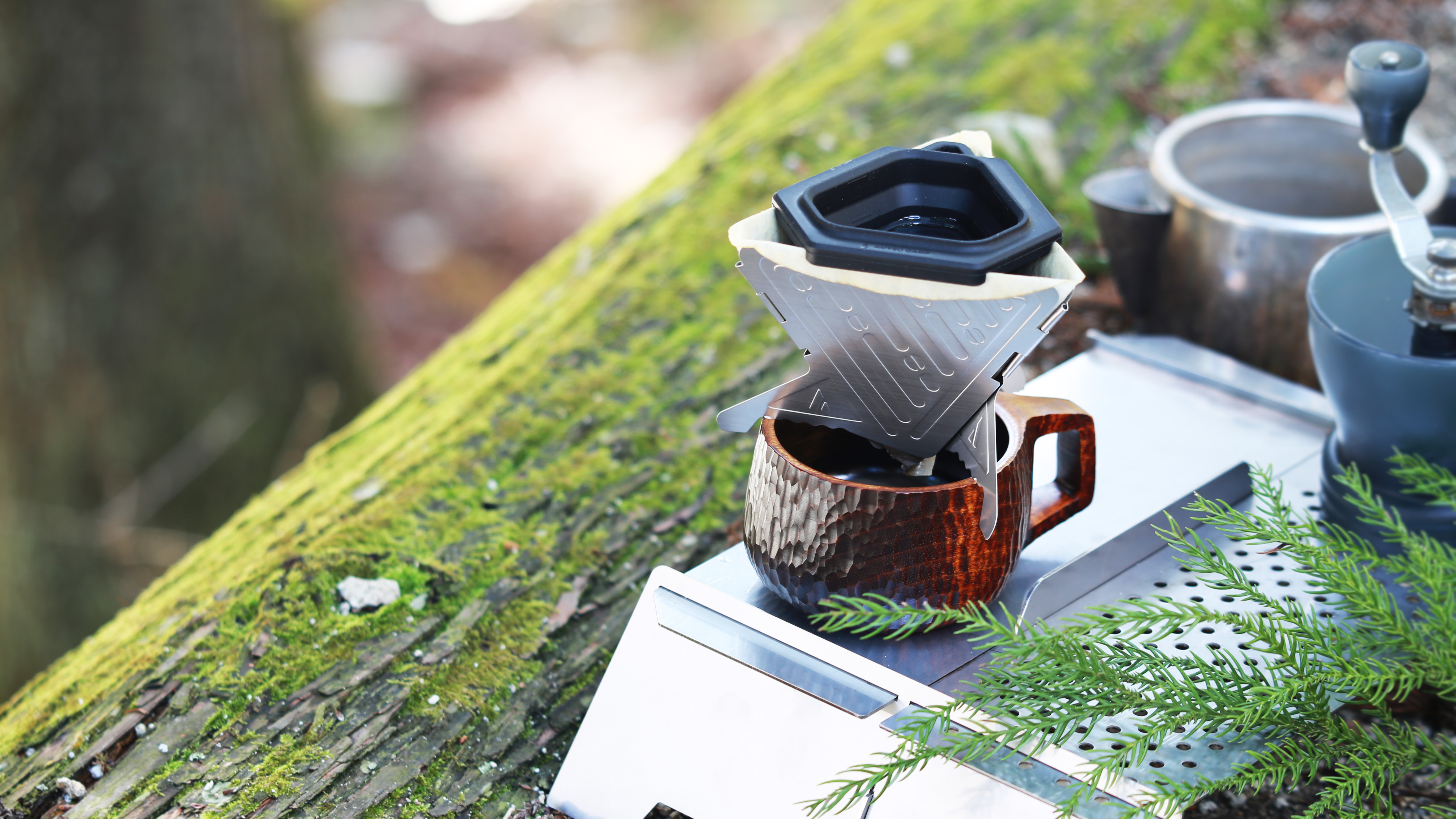 屋外でも本格的なドリップを実現するために開発された、折り畳み式ドリップアシストパーツ付コーヒードリッパーセット。