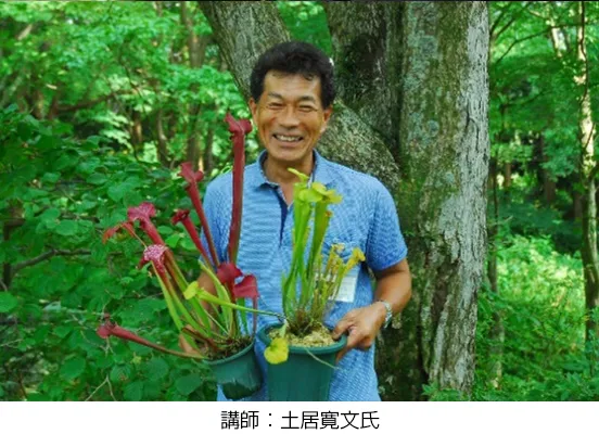 食虫植物栽培の達人、土居寛文氏を講師に迎え、食虫植物の育て方の講習と寄せ植えの体験を行います。完成した鉢はお持ち帰りいただけます。