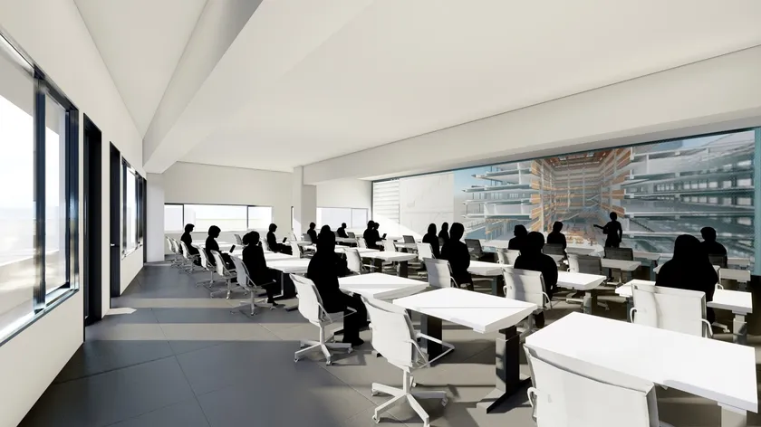 図1:「コラボレーションスタジオ」イメージ:学生が日々学習し、過ごす環境そのものが、新しいデジタル技術を体験する場となる