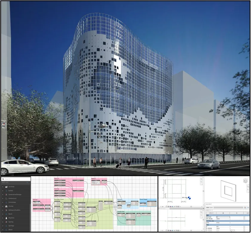 本事業で活用するデジタルツインラボは、現実の建物やまちをデジタル空間に再現し、リアルとデジタルの双子(ツイン)を構成することで、現実空間と、シミュレーションを加えた仮想現実を連動する教室群。建築のリアルスケールとデジタル技術を同時に体験することで、参加型のアクティブラーニングを喚起します。ビジュアルプログラミングによるプログラミング的思考法の基礎や、GIS(Geographic Information System)を用いた都市データの可視化、分析の基本技術を習得させ、アルゴリズムの構築力、明確な論理を組み立てる力や、スケールが巨大な建築・都市産業で対象全体を可視化する力を養います。