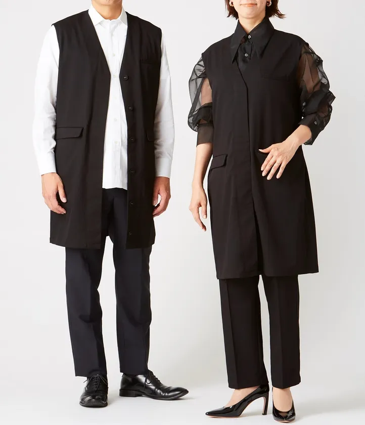昨今、コスメのあり方や美容の楽しみ方はますます自由に多様化しています。新たな制服では、年齢・性別を問わず心地よく着用でき、トレンド感かつ機能性に優れたデザインを追求。特に女性はライフステージが変わる中でも着用しやすいように、ロングベストのボタンを開けて着るスタイル、閉じて着るスタイル、ワンピーススタイルの3パターンを着用できるようにデザインを一新しました。