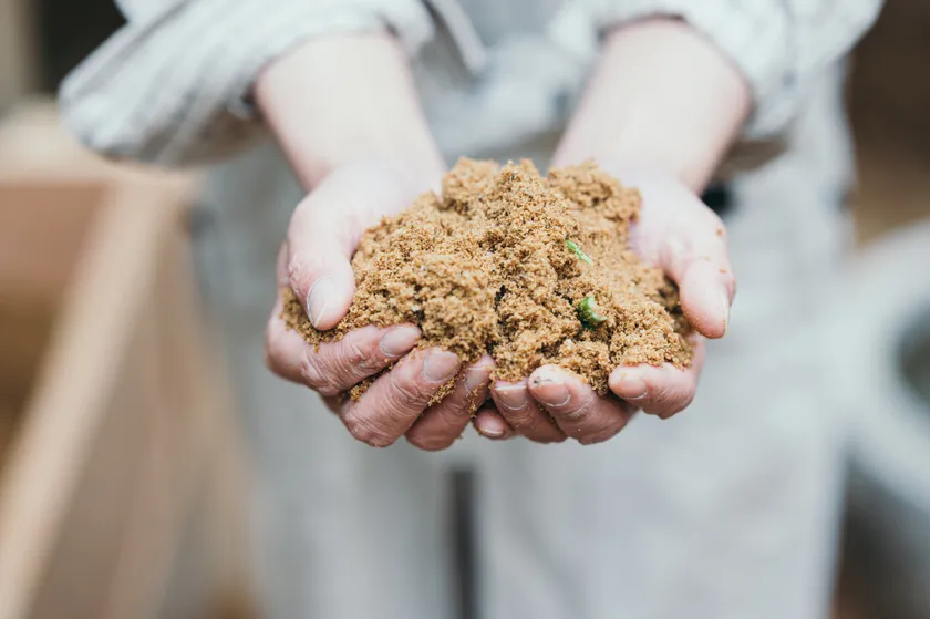 ASHIYOKUで使用した発酵パウダーを「発酵堆肥」としてならまちファームに使用。