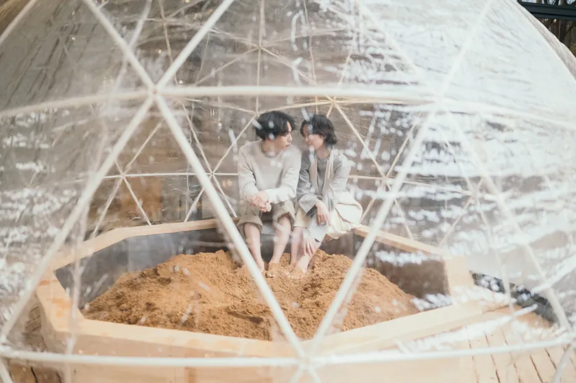 セトレならまち内の中庭スペースに展開している循環型オーガニックガーデン「BIO YARD」にて専門スタッフのサポートの下で発酵温熱木浴をご体験いただけます。自然発酵のみで65~85度まで温度の上がったヒノキパウダーに10~15分間包まれることで、体の芯まで温まり短時間で大量発汗します。全身浴の後は軽くシャワーを浴びて、お庭に設置した水風呂プールへダイブ。お庭のチェアで外気浴をしながら、フレッシュジュースやオーガニックビールなどもお楽しみいただけます。他の温浴とは異なる、自然発酵による温もりでお身体を深部まで温めて血流促進し、大量発汗することで冷えやむくみが気になる方、疲れやストレスの解消に、睡眠の質改善や美肌効果も期待していただけます。