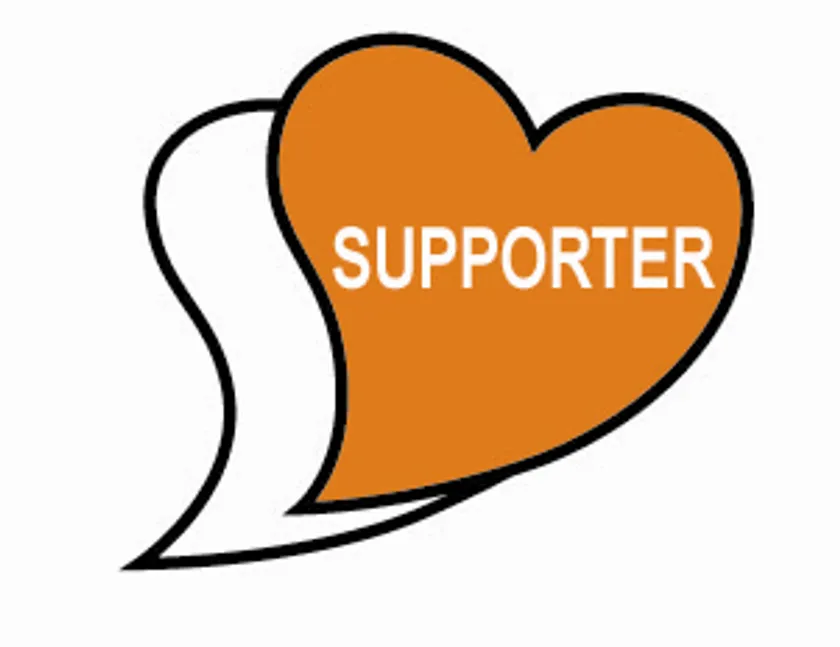 ※(注)障害のある方を支える「心」を2つのハートを重ねて表現しています。後ろのハートは障害のある方を支える様子と、「SUPPORTER(サポーター)」の「S」をあわせて表現しています。
