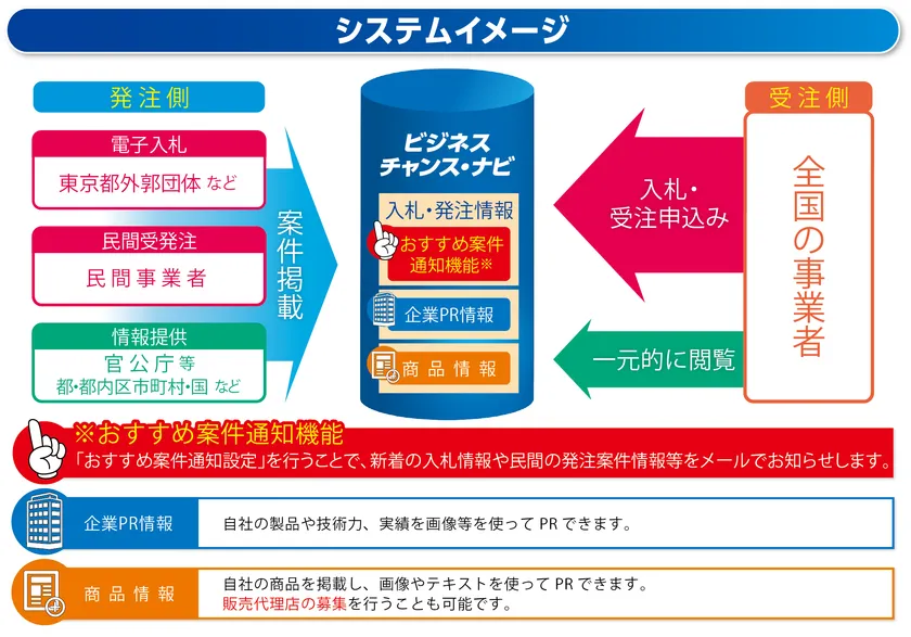 官民の入札・調達情報を一元的に集約した 受発注マッチングサイト「ビジネスチャンス・ナビ」 7月1日から都外郭団体が新たに電子入札の利用を開始!