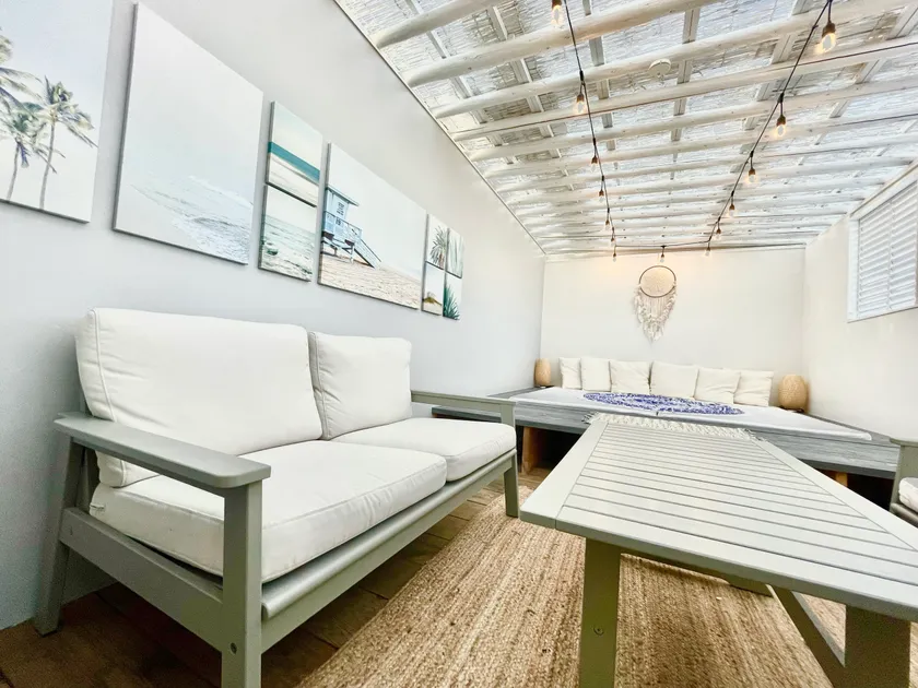 約800坪の白い砂浜に3棟だけ設置され、マリブカラーで統一された家具とシーリングファンがL.A気分を盛り上げる独立型コテージとなってます。