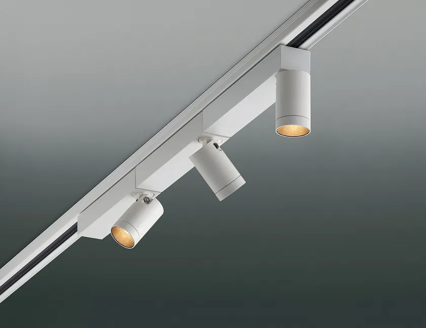自在な方向に光を照射するプラグタイプのスポットライトを、よりインテリアのテクスチャーに同化するよう新たにリニューアルいたしました。リニューアル前は、Φ30とコンパクトさを追求したミニマムデザインでしたが、新製品では眩しさを抑制するフードを標準装備し、取り外しての使用やオプションの拡散セードを装着するなどより幅広い提案が可能になりました。目的や演出に合わせて提案が出来るように2種類の配光角(広角/中角)、本体カラーを2種類(マットファインホワイト塗装/マットブラック塗装)を取り揃えるなど、新たに24機種をラインアップ。また取付レバーと本体を一体化し、シンプルで使いやすいデザインに変更したことで、連灯レイアウトが綺麗にまとまり、更に埋込ダクトレールへの取付けが可能となりました。
