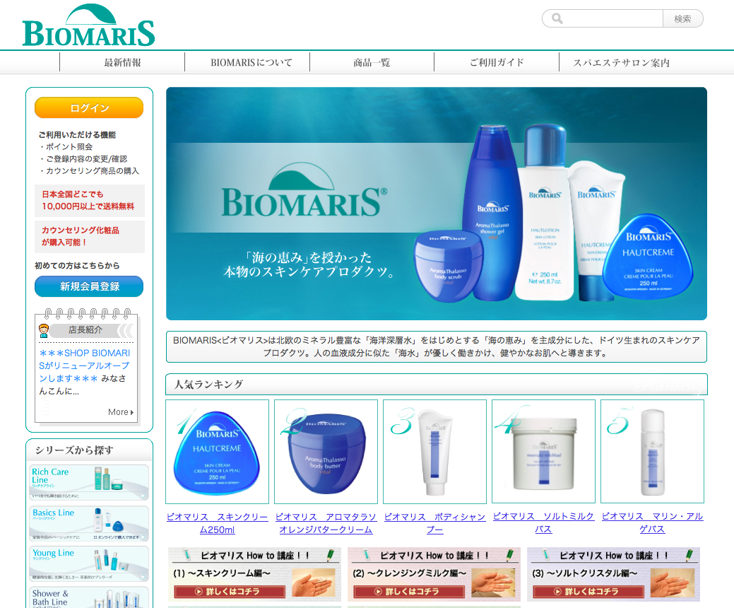 「SHOP BIOMARIS」は、純度の高い海洋水を使い作られた、ドイツ由来のスキンケア化粧品を取り扱うサイトです。