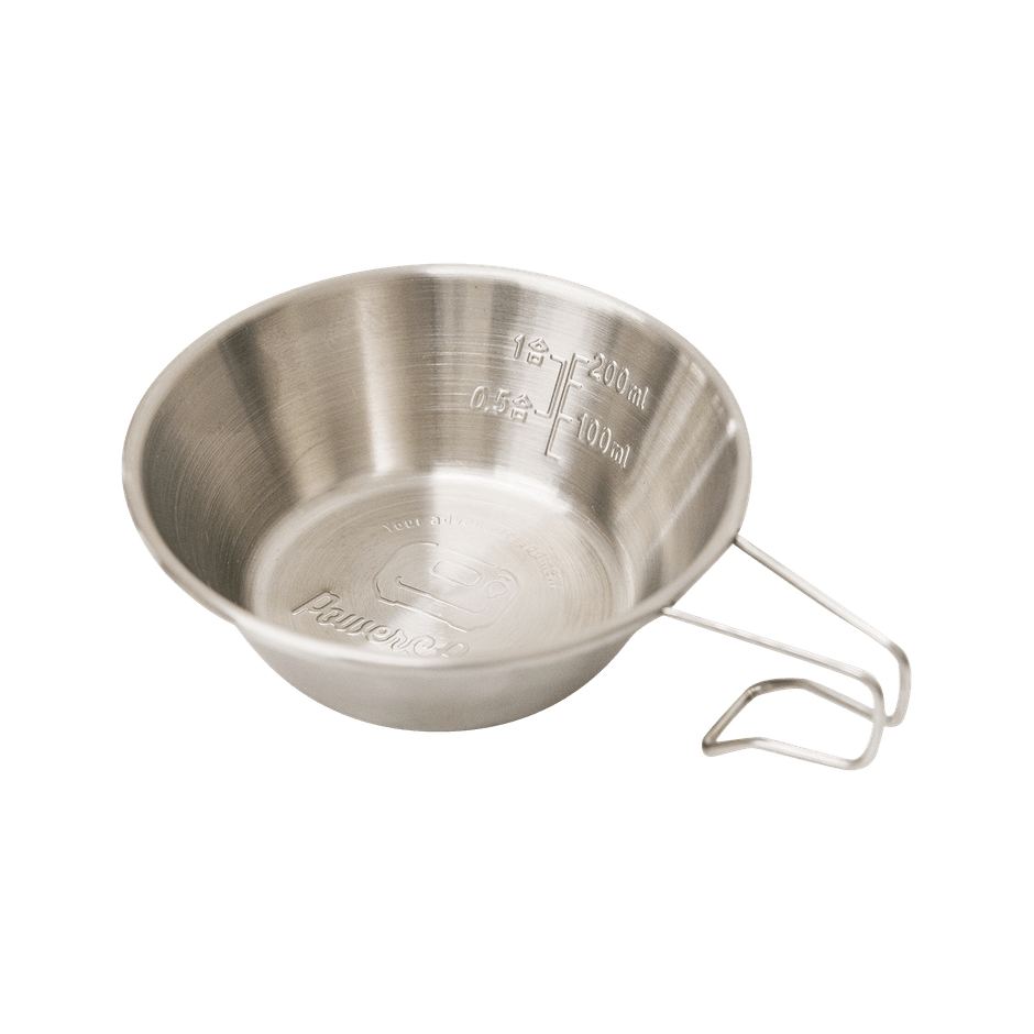 本製品は、熱伝導率に優れた冷めにくい性質のステンレス製の素材で作られており、お米などの温かい料理を入れるのに適したシェラカップ。食器として、計量カップとして、お鍋やフライパンとしても活用いただけます。さらに取っ手部分は、親指、人差し指、中指を使って、持ちやすさを追求したハンドルになっており、アウトドアの様々なシーンでの活躍が期待できます。