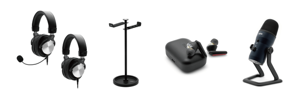2Wayのスタジオモニターヘッドフォン、ヘッドフォンスタンド、ワイヤレスイヤホン、USBマイクのご紹介。
