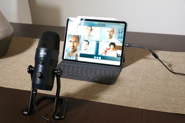 セットアップは付属のUSBケーブルとPCを接続して指向性パターンをダイヤル選択、あとはマイクの音量をゲインダイヤルで調整するだけです。AC電源は不要ですので簡単にセットアップができます。また、マイクのミュート、ヘッドフォンのヴォリュームなどは正面のパネルで簡単に操作出来ます。