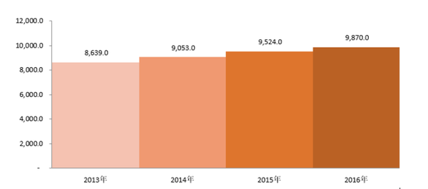 一人当たりの米国医療費、(USD)、2013ー2016年