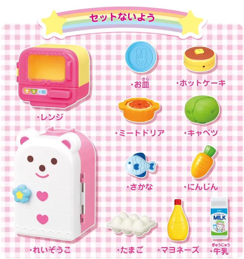 セット内容 :レンジ、れいぞうこ、お皿、ホットケーキ、ミートドリア、