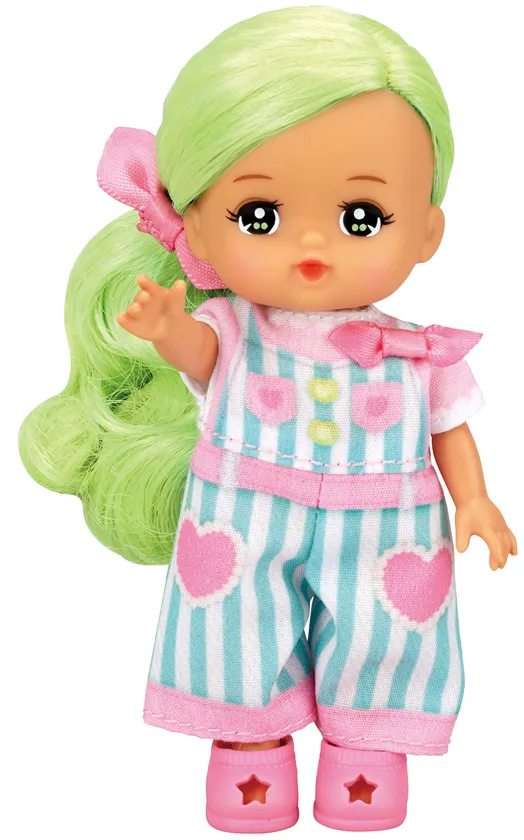 「ポケットメルちゃん」は、2021年9月に発売された、従来のメルちゃんより小さい手のひらサイズのシリーズで、いつでもどこでも一緒に遊べるお人形です。